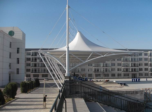 1.一般在膜材變(biàn)成膜結構建築之前 ,廠家都已經在PVC塗層覆蓋膜材的塗層表面再加一層二氟乙烯或氟乙烯(PVC)面層,以改善氟乙烯塗層老化、脫落的現象。不過在有強紫外線照射的地區,選用PVC塗層要慎重。膜結構景觀用的金屬構件應採(cǎi)取有效的防腐保護措施;設計時,構件的斷面尺寸選擇應考慮鏽蝕的影響而留有餘量。盡可能 選用不鏽鋼材料制成的構件 。