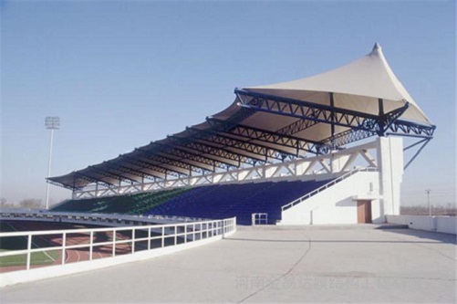 膜結構看台與傳統看台相比,看台造型大氣,線條簡潔明快,能遮陽避雨,集實用與優雅爲一體,具有造型優美,空間跨度大,自重輕,使用年限時間長等特點。體育看台造型美觀大方,空間跨度大。更好的體現瞭(le)膜結構建築空間跨度的優勢,而且施工周期短。膜結構的特點越來越被受關注,正因爲如此越來越多的膜結構設計都採(cǎi)用膜結構建築來代替傳統的混凝土建築,且膜結構價格實惠,膜結構公司也日益劇增,膜結構工程随處可見。